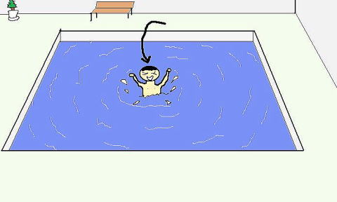 貴方はプールサイドから、プール中央に飛び込みました。