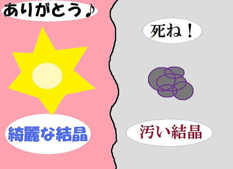 「ありがとう♪」という言葉を語りかけていた水は、綺麗な結晶を作り、「死ね!」と語りかけていた水は、汚い結晶になるようです。