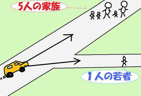 男「だ、だけど、あそこを曲がったら1人はひき殺しちゃうけど、5人の命は救えるんだよ。多数の人の幸せを守るために、少数の犠牲はしょうがないんじゃ?」