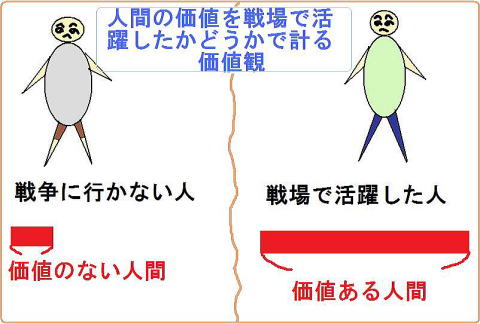 など、人間を評価するポイントは他にもたくさんあるのに、当時の人々は人間の価値を「戦争で活躍したかどうか?」で計っていたのです。