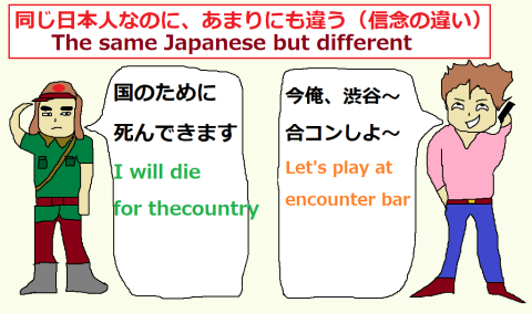 戦時中は、外国に行って、外国人を、たくさんあやめることが、正しいことでした。