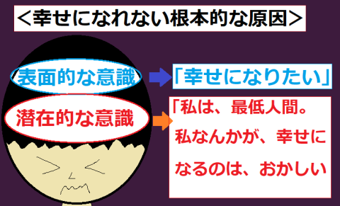 顕在意識では→「幸せで楽しい人生を生きたい!」