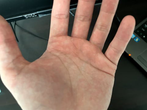痛いかもしれませんが、手のひらを、つねっても良いです。