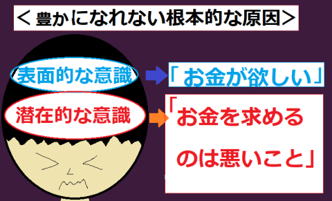 私達は通常、一生懸命に表面的な意識である顕在意識を使って「よ〜し!お金を稼ぐコツでお金持ちになるぞぉ〜!」と、頑張ります。