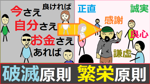破滅原則とは「今さえ良ければいい。自分さえ良ければいい。お金さえあればいい」という生き方のことです。