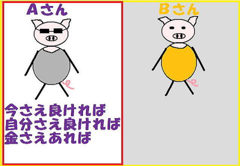 Aさんは、「今さえ良ければ良いんだ。自分さえ良ければ良いんだよ。金さえ手に入れば良いんだ!」という価値観にて、生きているようでした。