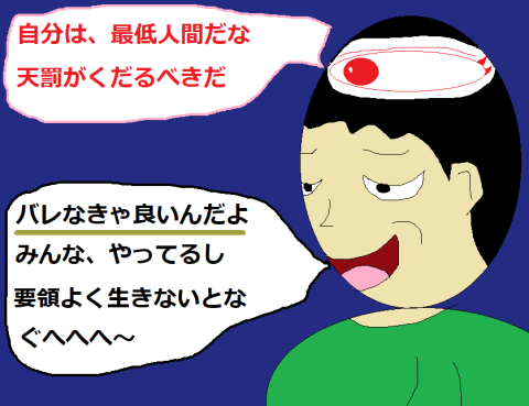 そのためか、良心に反するような嘘をつくと{悪いことをした自分を、自分自身で罰する心理}が働き。