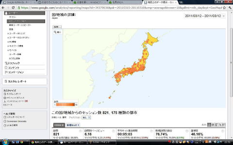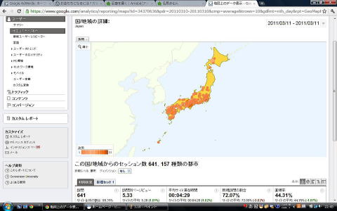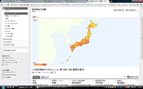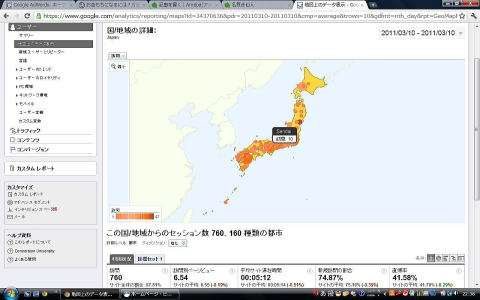 しかし震災云々に関わらず、全体的に見て、関東以南の地域の方が、アクセス数が多いですね。