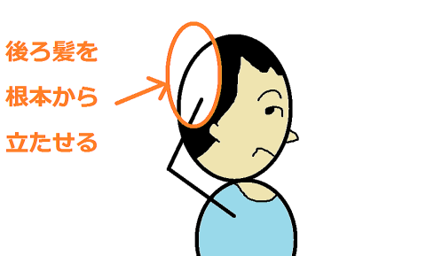 最初に後ろ髪を、髪の毛の根元から立たせます。