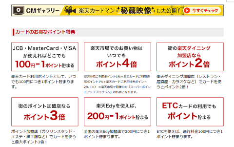 楽天カードのメリットは、ポイントが貯まりやすい点。