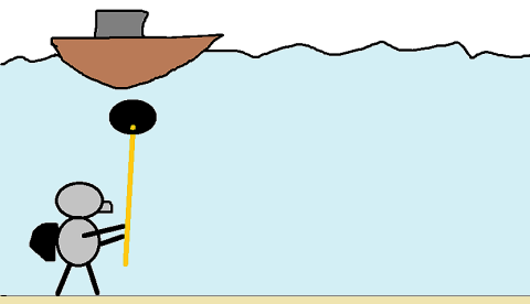 第二次世界大戦末期、日本軍は、若者に潜水道具を渡し海に入るよう命じ、先に爆弾をつけた竹やりで、敵の船をつく特攻攻撃の練習をさせています。