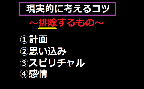 合理的な考え方をするために必要となる【現実的な考え方】は、以下の記事が詳しいです。