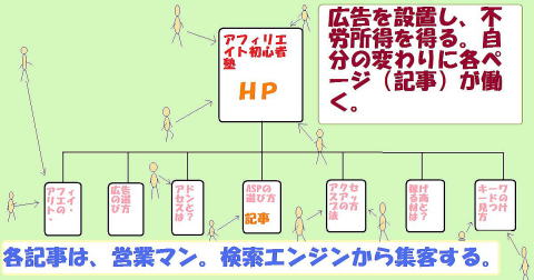 HPやブログは収入を生み出す店舗、各ページ(記事)は営業マンです。