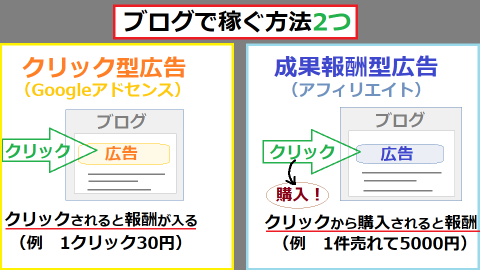 ブログだと、スムーズに、クリック型の広告収入&成果報酬型の広告収入等で、稼ぎやすいからです。