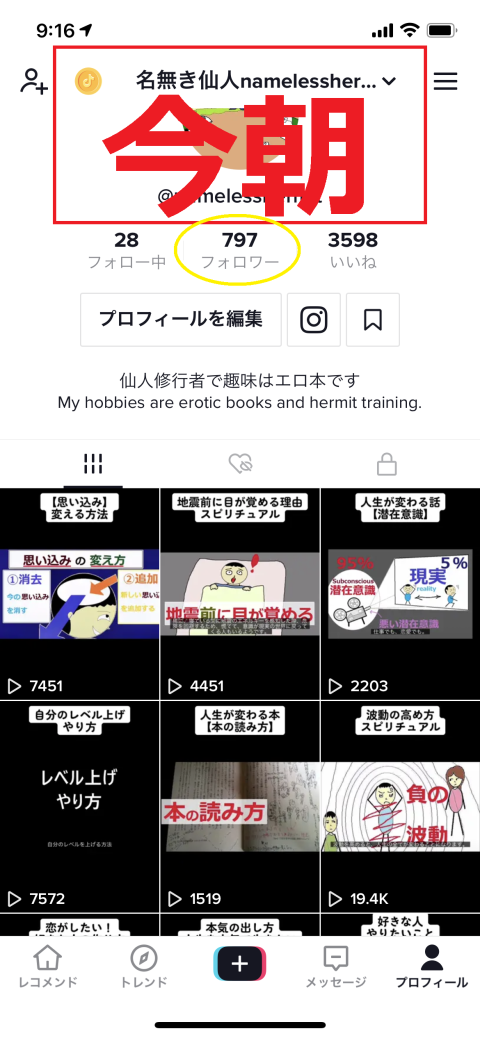 仙人「TikTokのフォロワー数が増えて1000人に到達するといいのぉ」