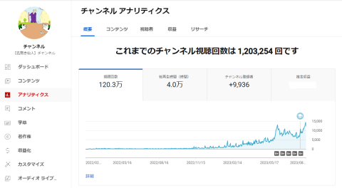 チャンネル開設後を始めて、1年半で、チャンネル登録者数が1万人を超えました。