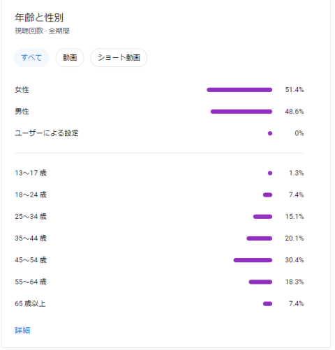 ちなみに、フォロワー数1万人を超えているTikTokでは、男女比は半々で、34歳以下が41%。