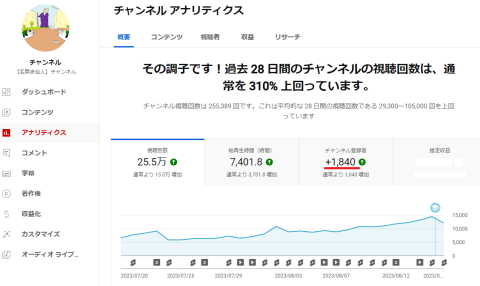 実は、こちらの登録者1万人を超えたチャンネルは、収益化済チャンネルの2本目。