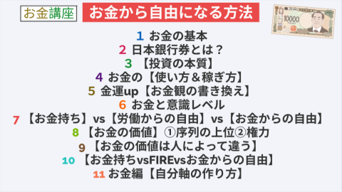 心の面でも、お金から自由になりたい人には、おすすめの【お金講座】になっています。