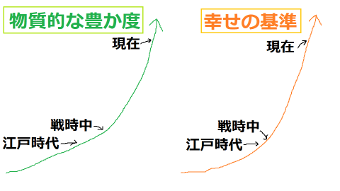 収入増えて生活水準が上がっても、【生活水準が上がった生活】に慣れるせいで、幸福度は、たいして上がらないわけです。
