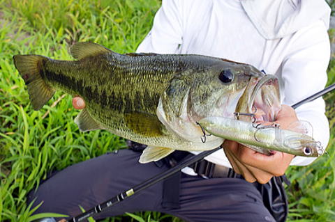ルアーとは餌に似せた擬似餌のことです。写真はルアーで釣れたブラックバスです。
