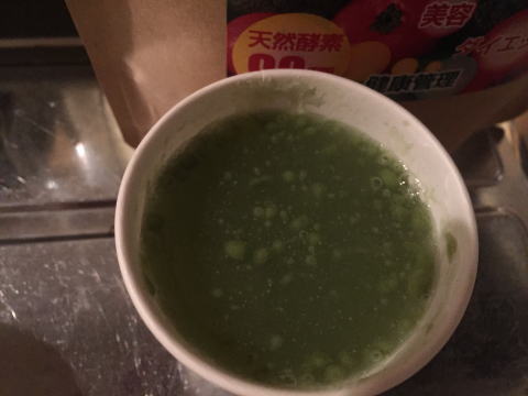 「うわー、青汁じゃん。」と思ったのですが、水に溶かすと甘いフルーティーな香りに変わりました。