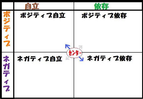そして、ペア/セットとなるのが【ポジティブ自立】と【ネガティブ依存】、もしくは【ネガティブ自立】と【ポジティブ依存】のようです。
