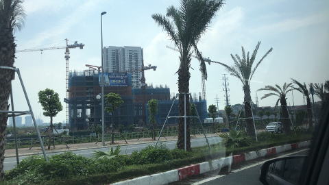 空港からハノイの街中までの道路や橋は、日本のODAや日本企業の協力もあって作られているそうで、三菱重工など、日本の大企業の看板が立っていました。