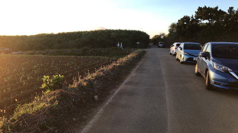 長間浜ビーチは、そこまで有名なビーチではないのに、駐車場にとめきれない程、多くの人がサンセットを見に来ており、驚きました。