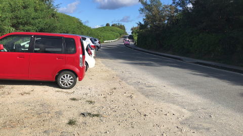 ネットで行った下調べでは、駐車場の情報を見つけることができず、ストリートビューを使っても駐車場がわからなかったので、駐車場だけが不安要素だったのですが、ビーチに降りる道の近くに、何台もとめられる駐車スペースがありました。