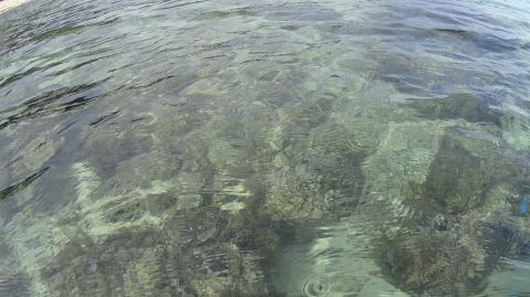 リーフまで水深が浅いようで、干潮時には水が引いてしまう場合もあるようですが、私が行った時には浅い場所でひざ下の水深、深い場所で腰くらいの水深の海がリーフまで続いている感じでした。
