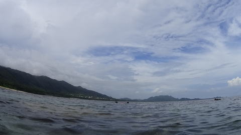 「とりあえずチェックしてみよう。良ければ明日の午前中に行こう。」ということで、夕方17時に米原ビーチに着いて、ちょっと泳いでみたら・・透明度が高く5m以上、先が見えて魚もたくさんいて感動しました。