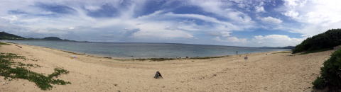 米原ビーチの全体は、こんな感じの広い海岸で、