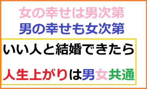 今回の記事は、主に「収入面」に焦点をあてて書かれていますが、【人生の幸福度】の面でも{いい人と結婚できたら人生あがり}だと感じています。