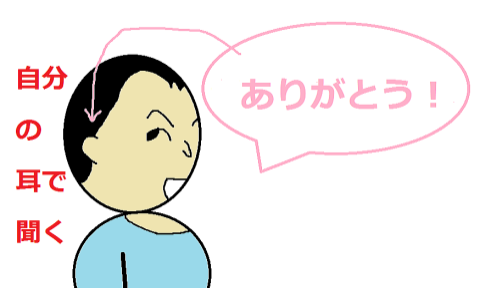 「ありがとう」と口に出して言った場合、その{言葉}を、自分自身の耳で聞くことになるからです。