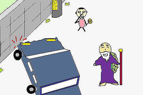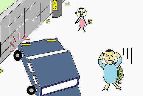 ある日、亀男が車を運転していると目の前に子供が飛び出してきました。