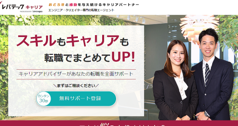 レバテックキャリアはIT/Web系のエンジニア、デザイナーの方々向けに特化した転職サイトです。
