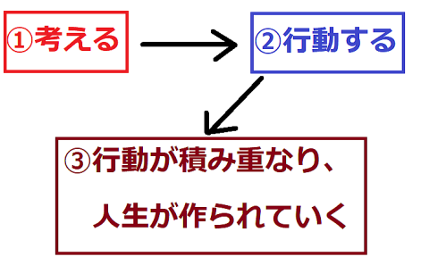 で、考えた結果、行動し、行動の結果、人生が作られていきます。